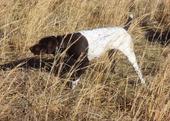 Trained dogs are finished with training at around a year old. All dogs for sale as trained dogs have a good nose, desire and biddability. Biddability being the quality to learn from instruction and/or discipline, sound temperament. Whistle trained, "whoa" broke and steady on point to flush, retrieve to hand. Well trained young dogs ready to begin hunting. Collar conditioned. We also offer house training for those folks that want to skip the "house training". Go to the door to go out, stay off the furniture, don't beg at the table, crate trained, etc. Well started on becoming a family member with some manners!